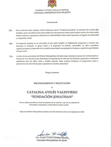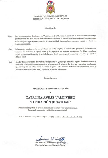 Otorgado por la World Academy of Human y Sciences, Doctorado a Catalina Avilés, Presidenta de Fundación Jonathan